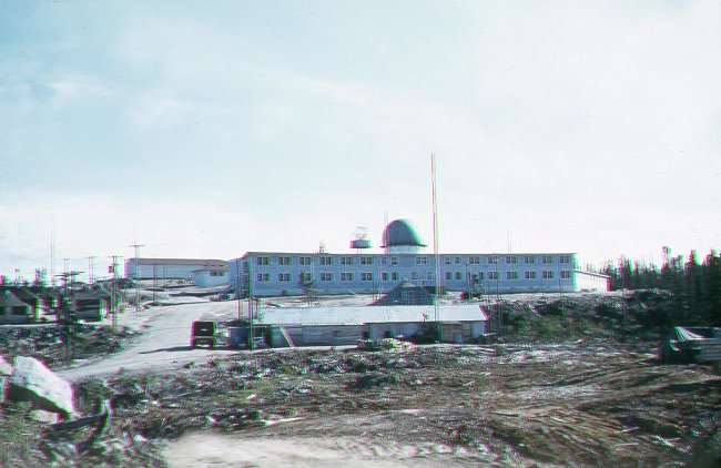 - Radar antennas and catwalks joining assorted buildings - June 1954.