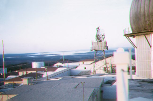 - The CPS-5 search radar antenna as seen from the ground - March 1954.