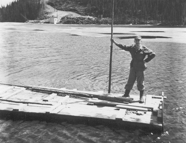 - John Michelson on a raft at Lake Alexander - June 1954.