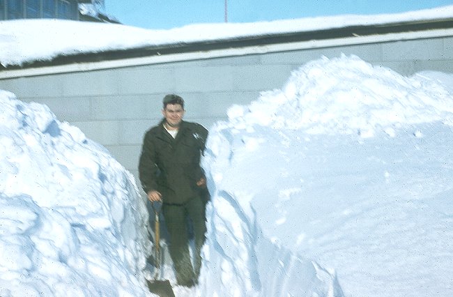 - Quint Hegner shoveling out the fire escape area - November 1956.