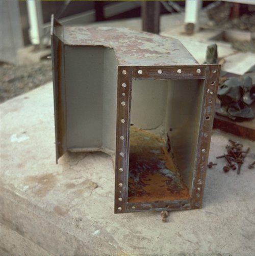 Stan Howe examining waveguide. Emergency horn in background - August 1960.