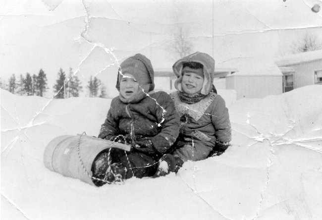 Dan and Mike Coulthard on a toboggan - December 1967.