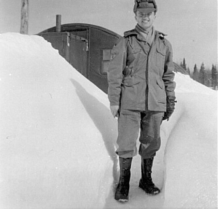 - Jerry Merenga on the catwalk of one of the radar towers - October 1957.