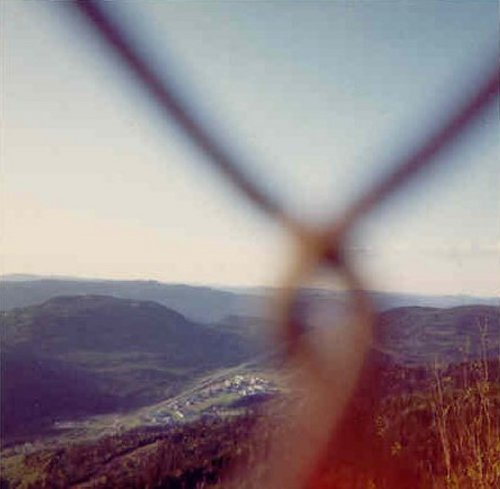 Photo of RCAF Station Mont Apica with townsite in foreground and the Operations site visibile on the hill - May 1965.