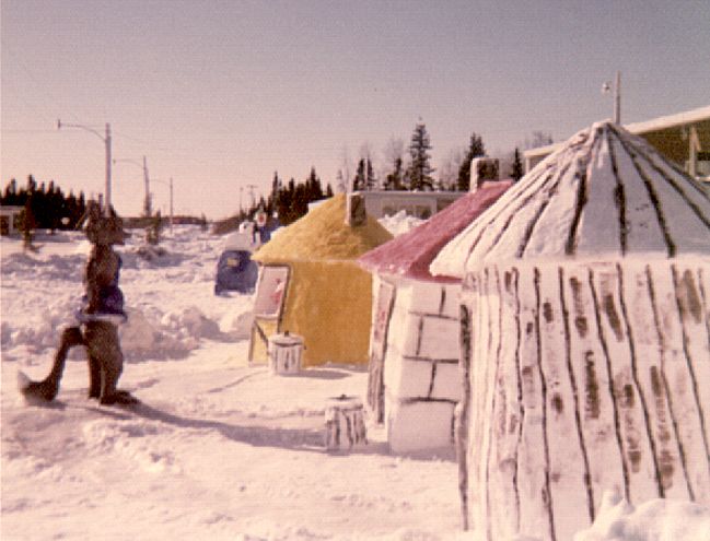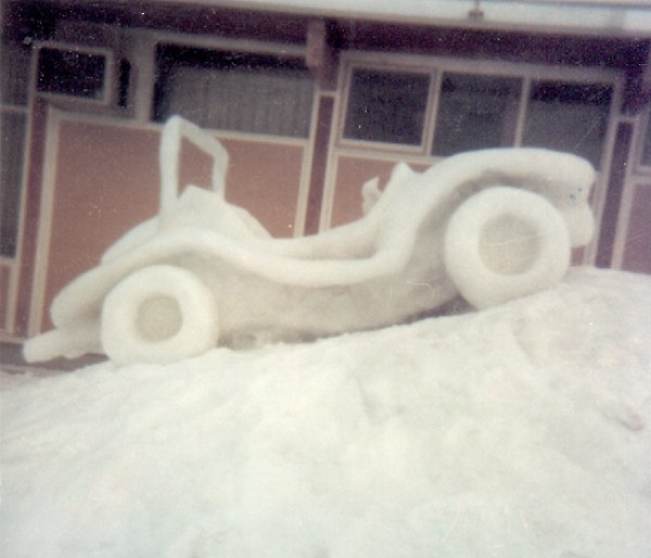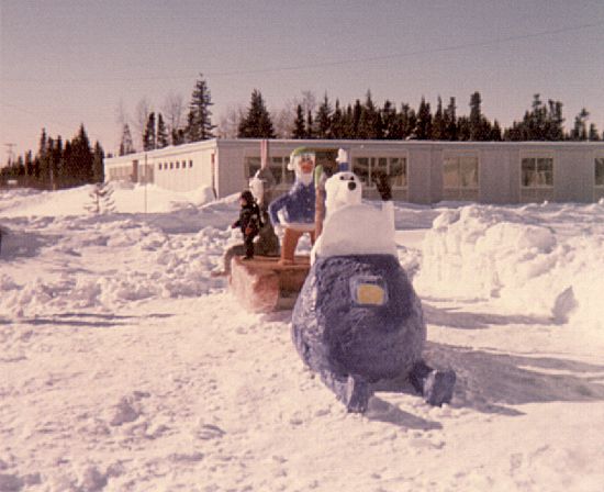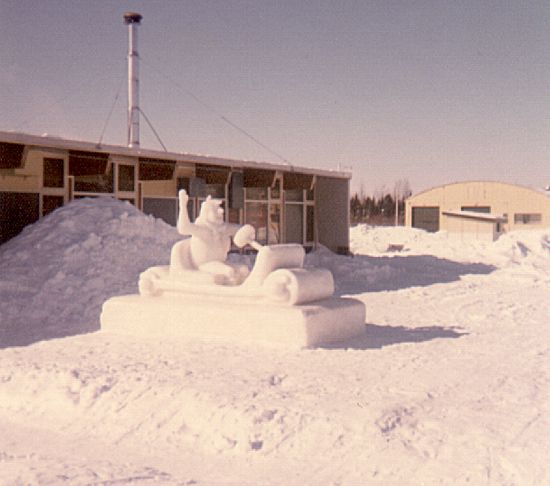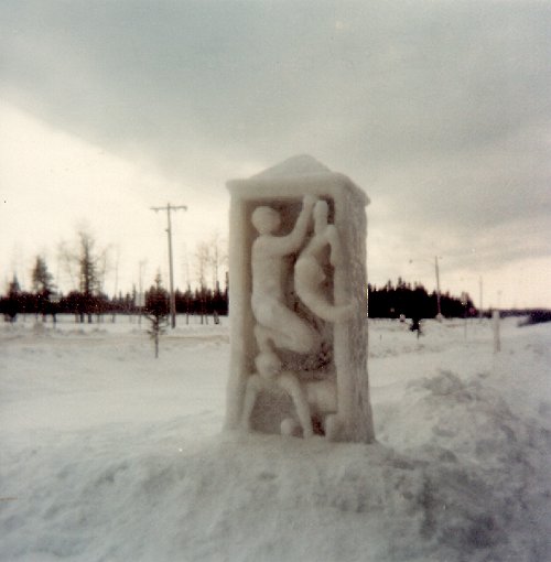 Winter Carnival. The telephone booth snow sculpture - February 1975.