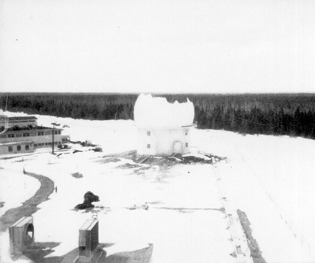 Taken from top of the Ops building. Dismantling work just begun. Note the Technician on the top of the dome - April 1975.