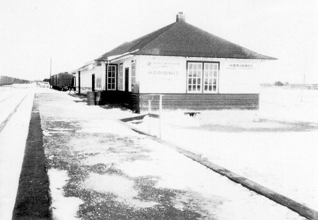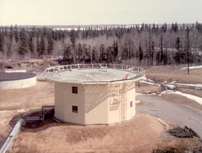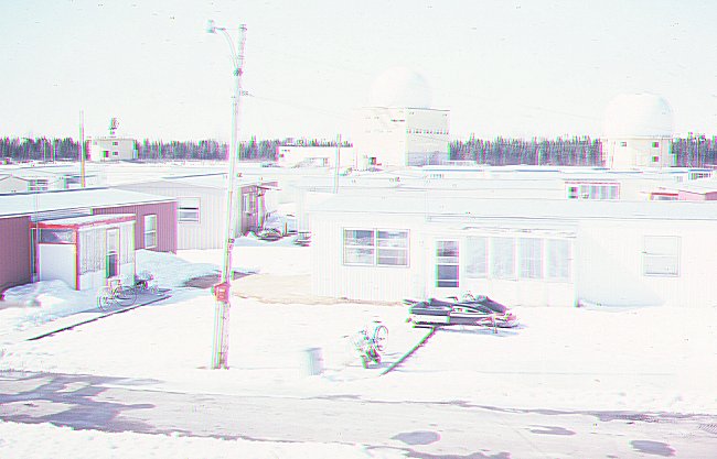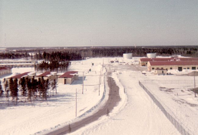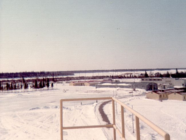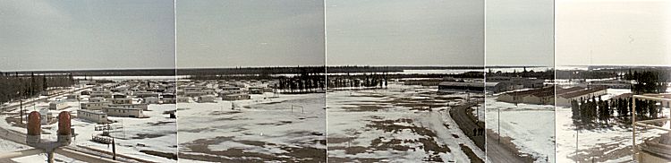 Panoramic view of CFS Moosonee taken from top deck of Search tower - April 1975.