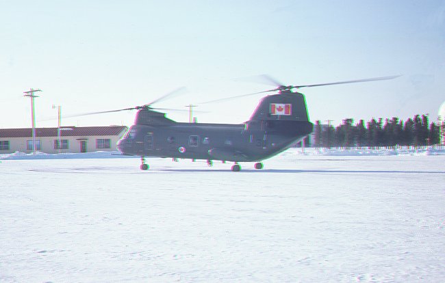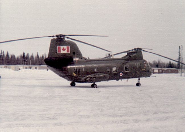 CAF helicopter brought in to assist in the dismantling of the antennas - March 1975.