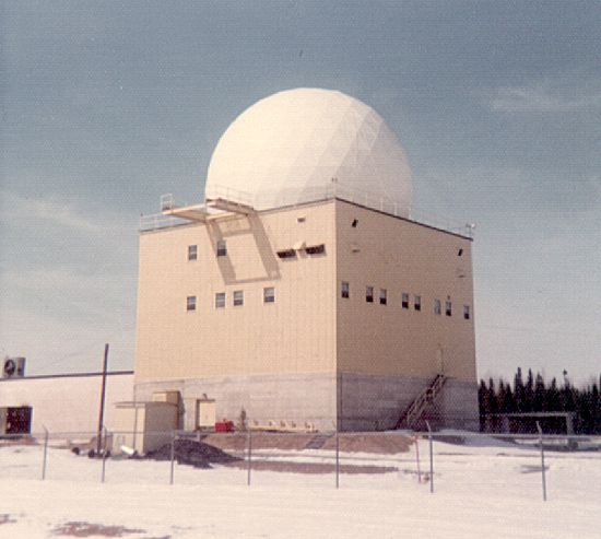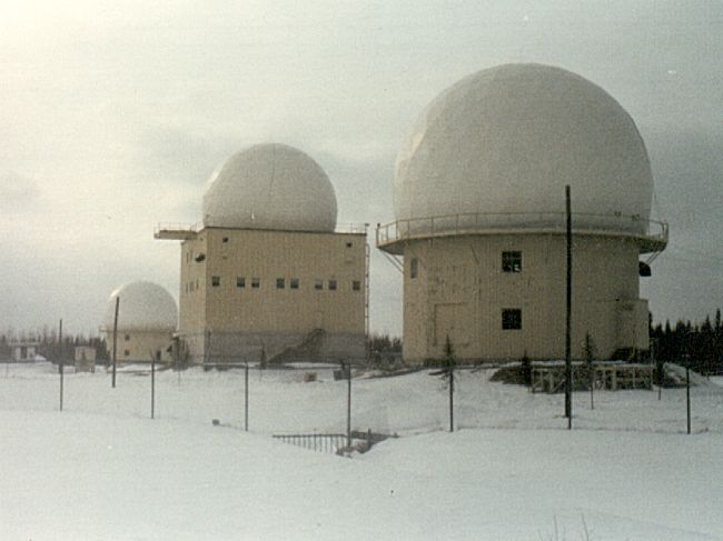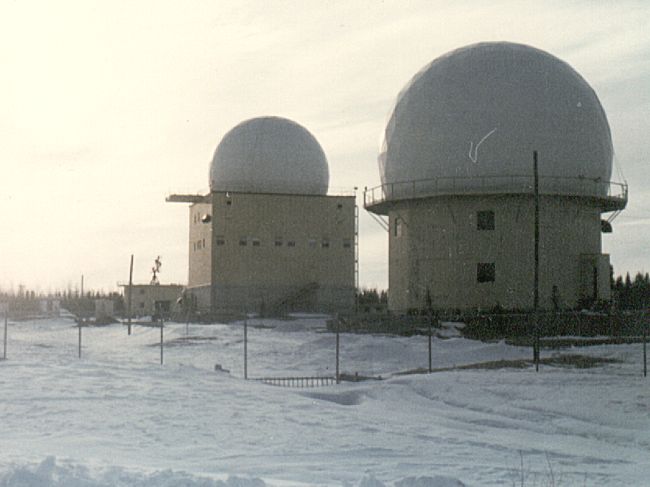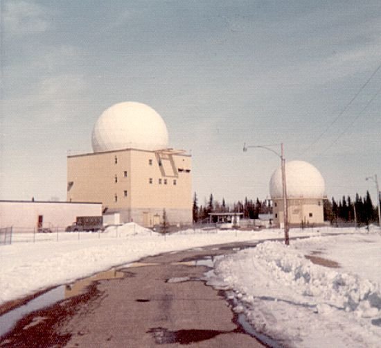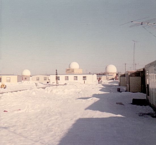 Search and height finder towers and radomes as seen from a PMQ - March 1975.