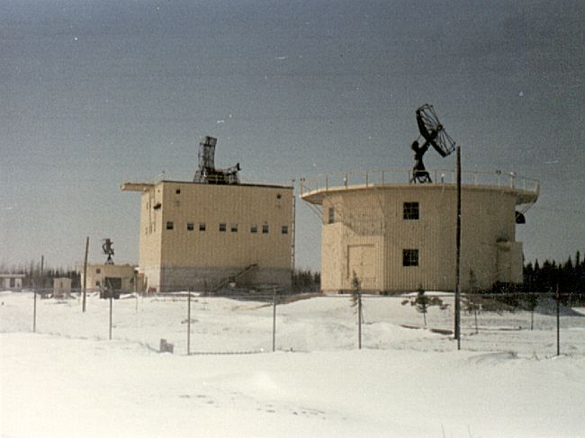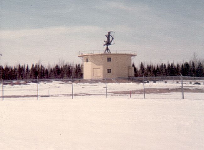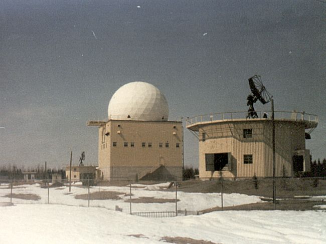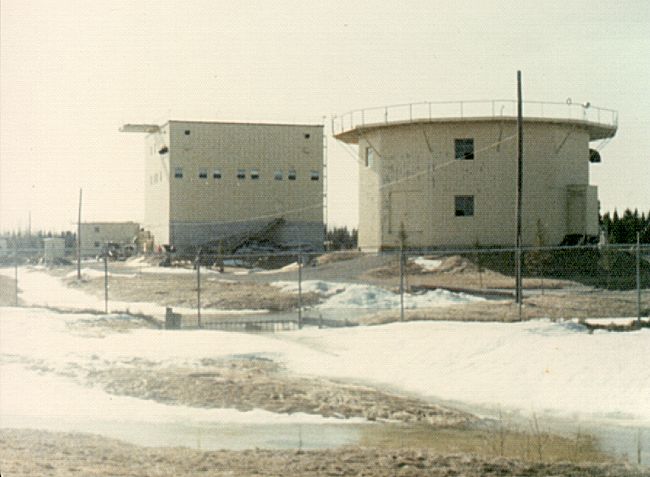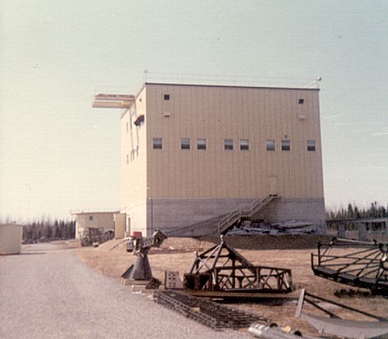 Main Ops building after the radome and the search antenna were removed. Some dismantled antenna parts are in the foreground - April 1975.