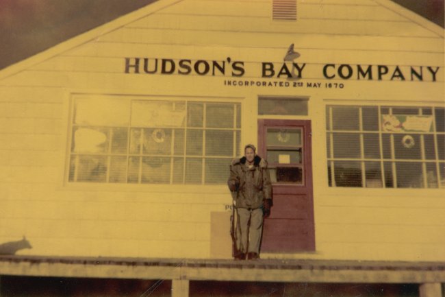 - Herman Munday in fron of the Hudson's Bay Store - 25 December 1952.