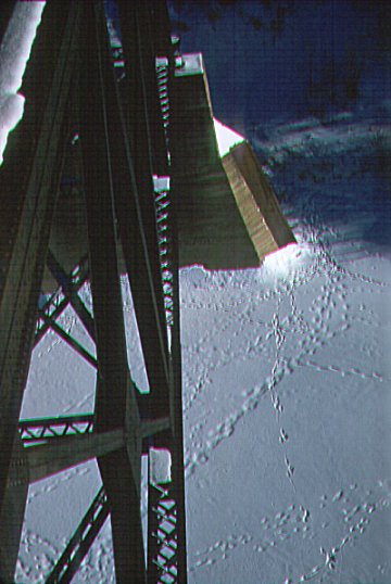 - View of the trestle and the frozen river looking down from the tracks - December 1959.