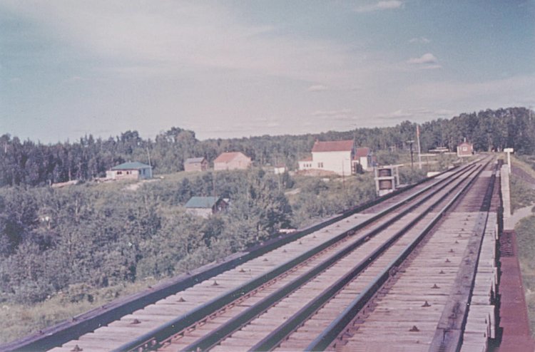 - Railroad bridge over the Pagwa River with the village of Pagwa in the background - September 1962.