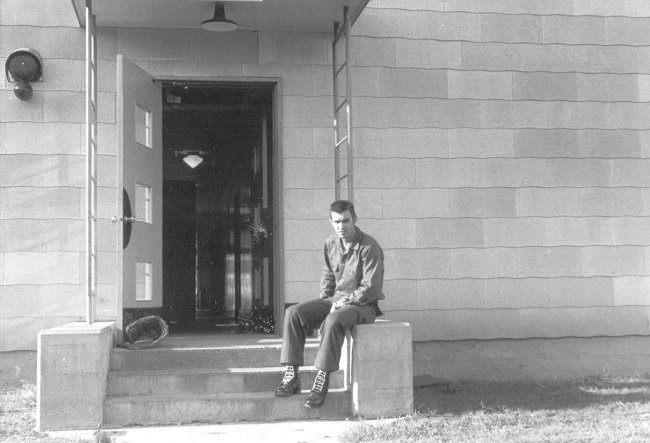 Ken Hoeft in front of barracks - 26 September 1955.