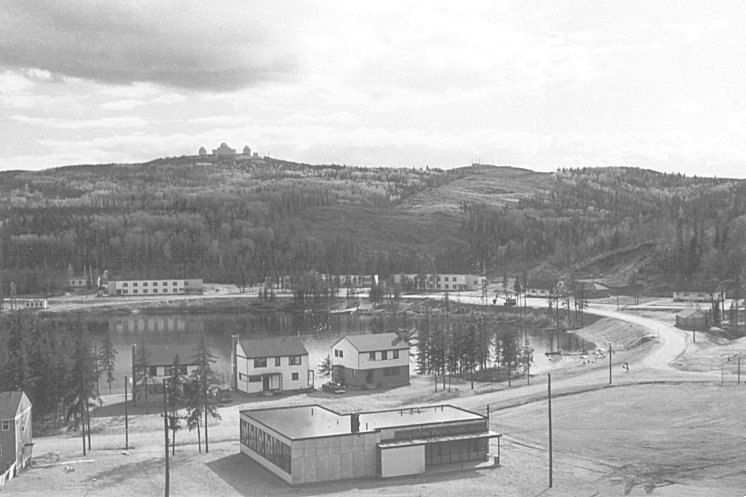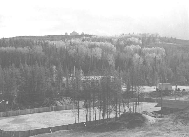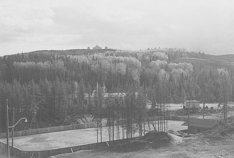 - Unused hockey rink (foreground) and the Operations site (on the hill) - July 1956.