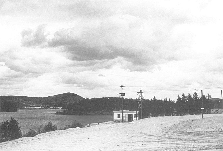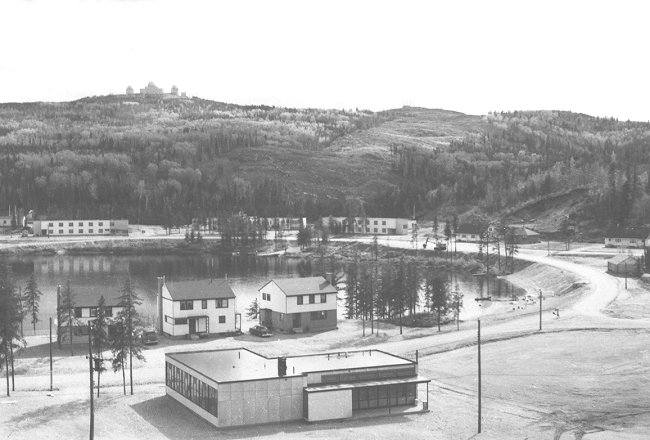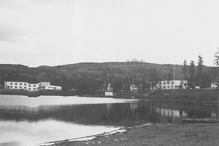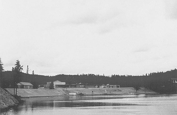 - The lake, barracks, and the Operations site perched on the hill - June 1956.