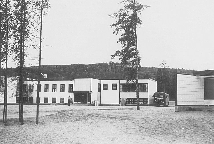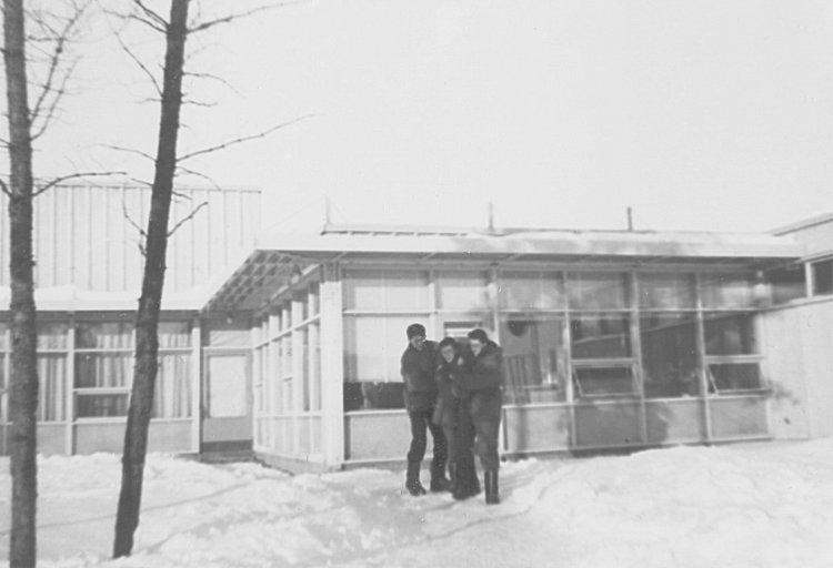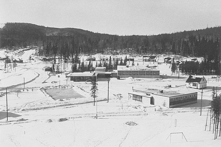 - Recreation Centre and Snack Bar in center. Outdoor skating rink on left - January 1956.