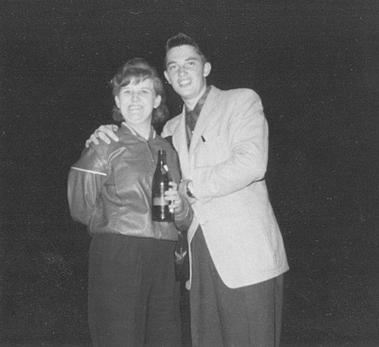 - Hank Francoeur (holding the case of beer) with Jan Taggart - July 1956.