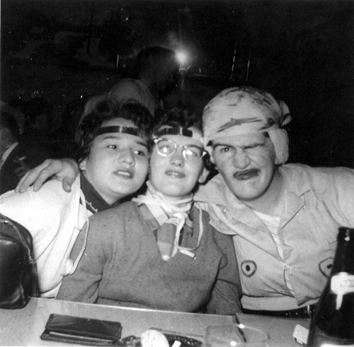- Pat Nigidia, Kay Michaud and Decker at Ubald Hotel Halloween Dance - October 1956.
