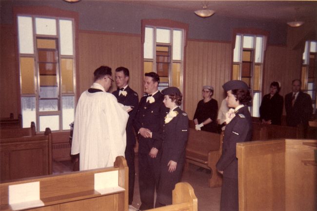 - Dottie Brown's wedding. Norma Sills in uniform by pew- 1961.