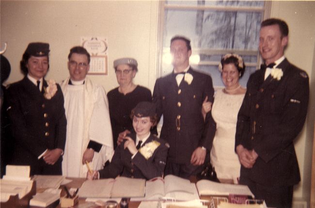 - Dottie Brown's wedding. Norma Sills in uniform by pew - 1961.