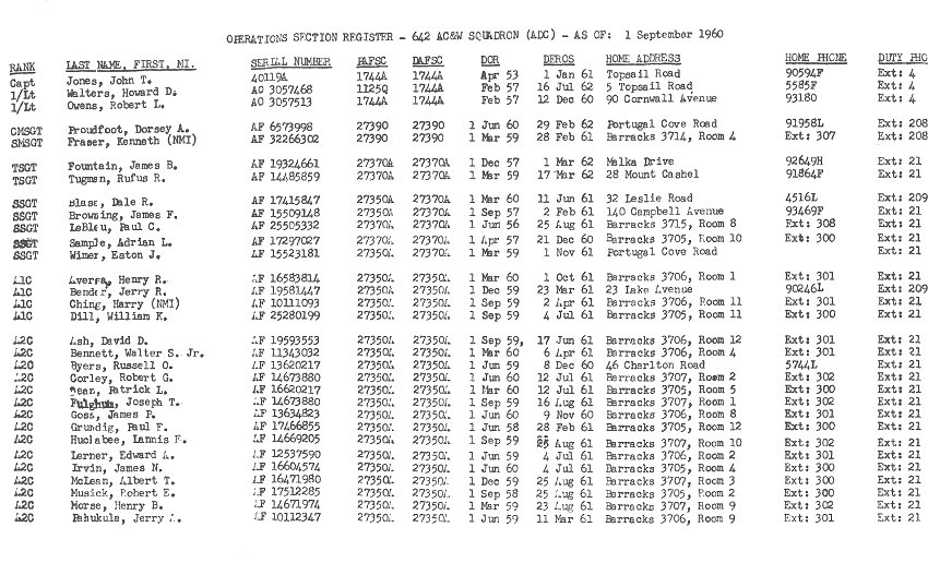 - Special Orders with assignment to 642nd AC&W Squadron - 7 July 1960.