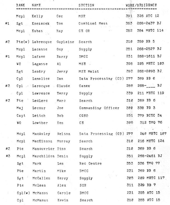 - Page 42 of "The Ridge"; Station Telephone Directory - April 1984.