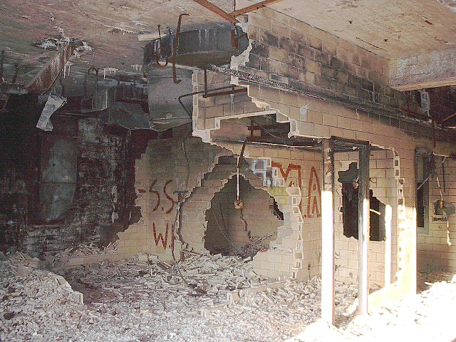 - Interior view of the remains of the Operations building - 22 May 2002.