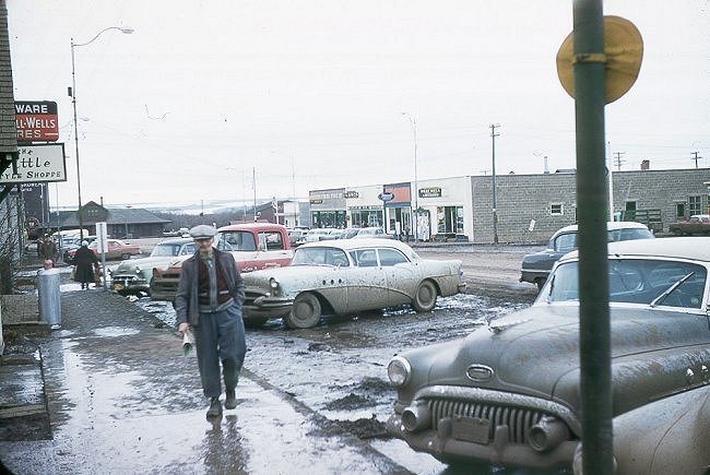 - Main street in Beaverlodge during the spring thaw - April 1958.