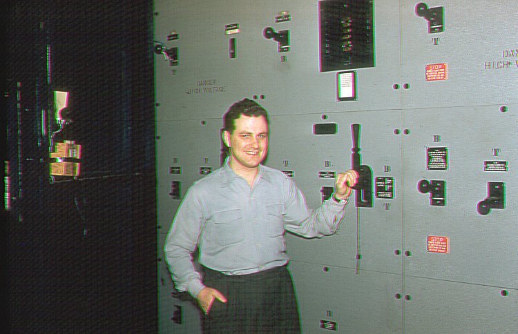 - Mr Bailey in front of the radar power distribution panel - July 1956.