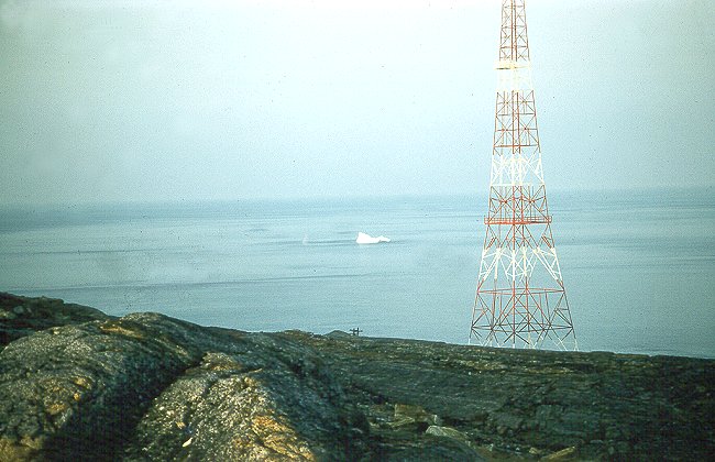 - An isolated communications antenna flanked by an isolated iceberg - August 1958.