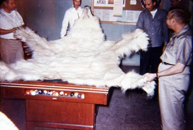 Polar bear hide from a renegade bear shot by an RCMP Constable and donated to the Officers Club - November 1959.
