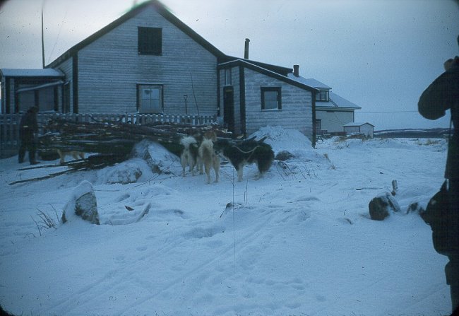 - Standing on the frozen bay looking at the wharf and the Hudsron's Bay store - Novemner 1953.
