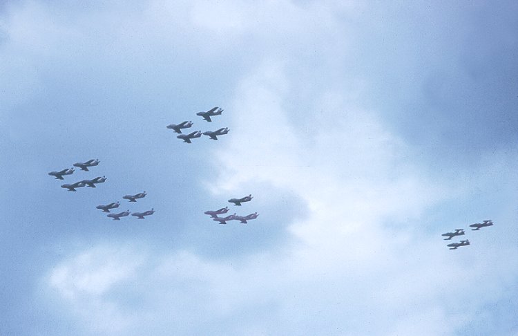 9. Flypast of 16 F-86 Sabres followed by 3 T-33 jet aircraft - 7 August 1960.