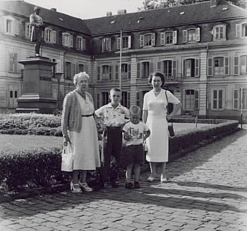 (L-R) Grandmother, David and Robert Hackett, mother in Zweibrucken - June 1958.