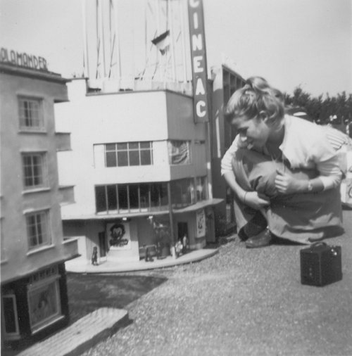 Viginia Riley checking out one of the displays at the Miniature Village in Holland - August 1958.