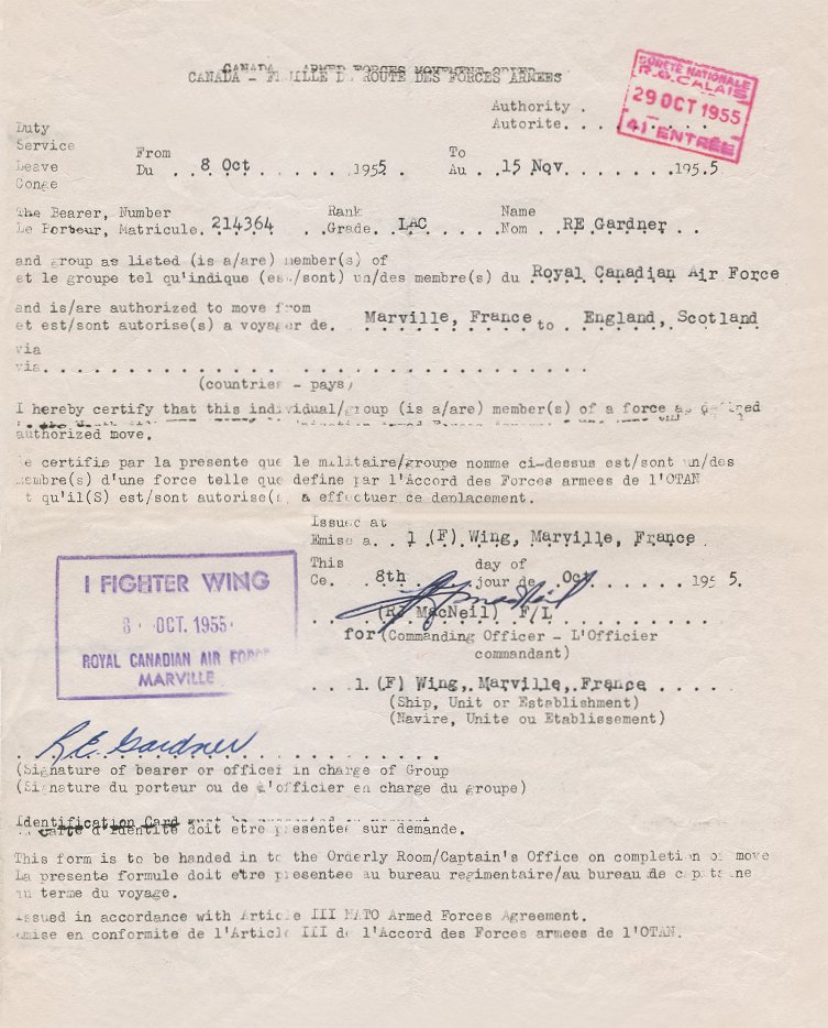 - Canadian Armed Forces Movement Order - 8 October 1955.