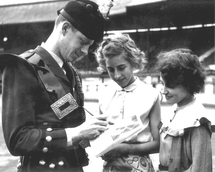 - Member of the Pipe band signing autographs at the Caledonian games - May 1954.