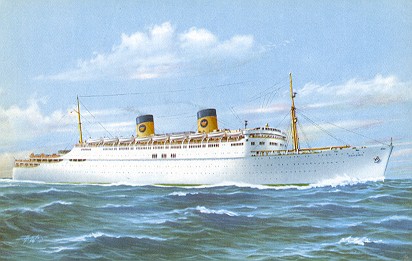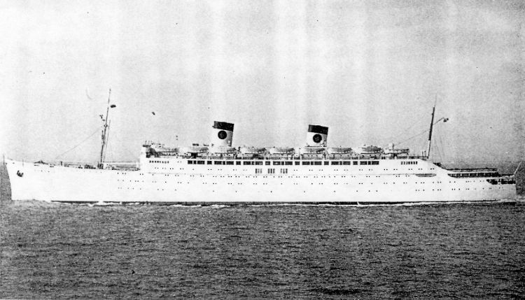 Renamed Homeric. Sailed to Trieste for reconstruction of passenger accommodation by the Monfalcone shipyard. 147 First Class, 1,096 tourist class. 18,563 GRT. Length overall 195.5 meters or 641 feet. |