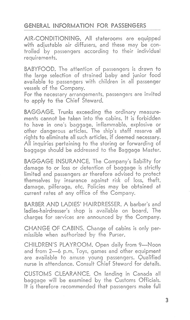 - Back cover of the List of Passengers Booklet - 11 July 1961.