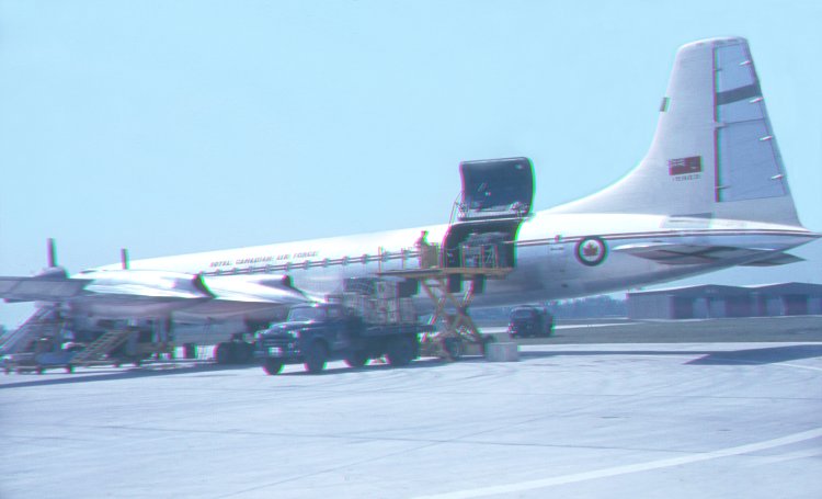 - RCAF Yukon 15923 parked on the ramp at Marville France - June 1965.