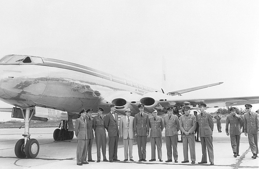 Unidentified military and civilian personnel in front of the Comet.